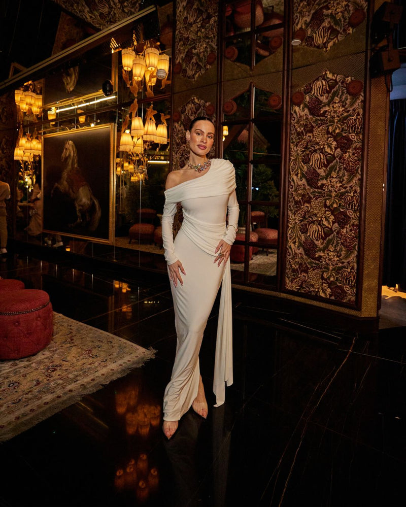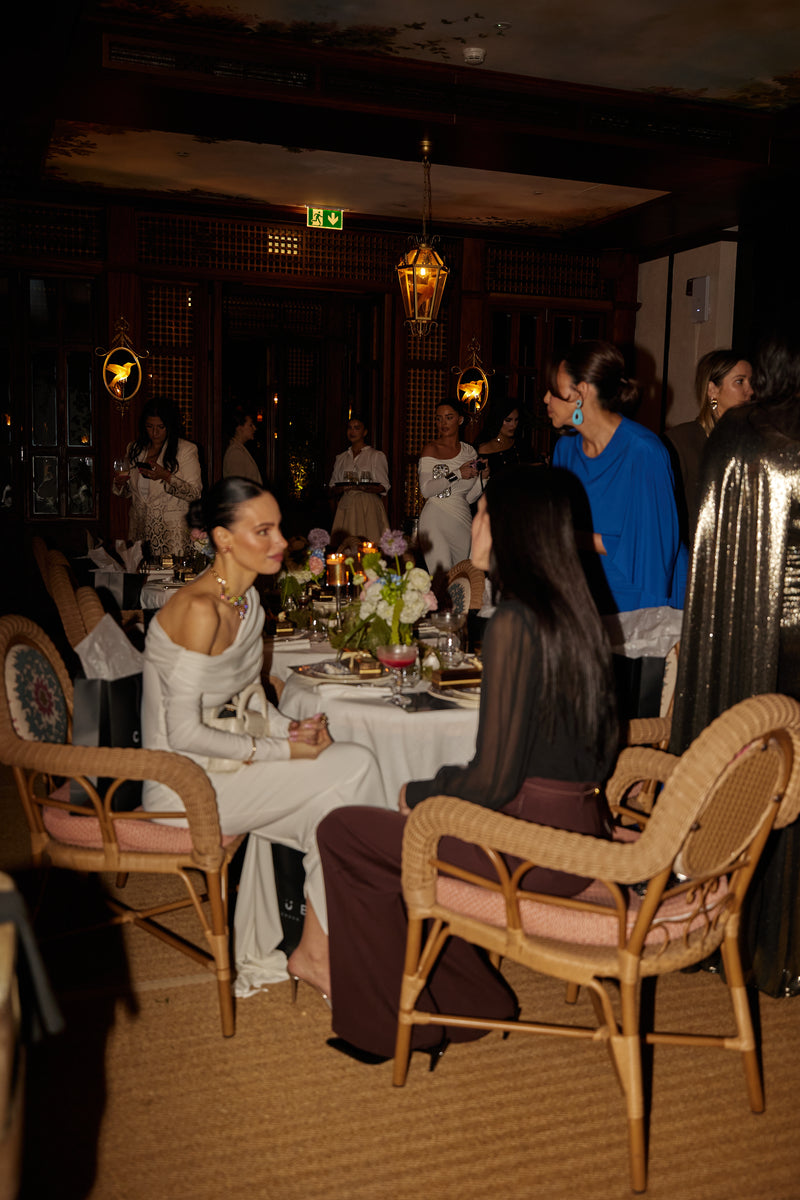 Situated in what can only be described as one of the world’s most opulent and premium destinations, Maison Revka, this was a chance for our guests to experience the vision of Club L’s modern luxury and meet our team over a beautifully curated dinner. The venue is renowned for its incredibly prestigious space located on the vibrant Bluewaters Island, and its signature French elegance blend of Slavic-inspired dishes. Each of our guests wore Club L designs to the event and were gifted a dress, gift card, and dates from a premium Dubai-based brand called Basteel.